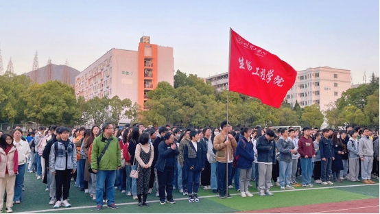 (通讯员 向晓娜)2023年3月13日,生物工程公司在文园操场举行升国旗仪式。我公司党总支书记杨晖,副书记谭锡军,学工办主任郝淑颖,辅导员余海鹏、王海芸、方丹及生物工程公司全体同学参加了本次升旗仪式,仪式由薛梦瑶同学主持。