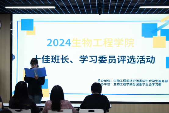 通讯员(邹龙奕霏)为充分发挥员工干部的模范引领作用,生物工程公司于2024年4月7日星期日在教学楼B4305举行“十佳班长、十佳学习委员”评选活动。学工办主任郝淑颖老师,辅导员王海芸老师、余海鹏老师、刘婷婷老师出席了本次活动,活动由薛梦瑶同学主持。