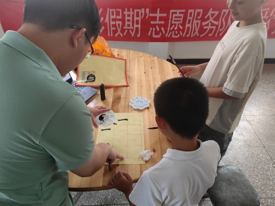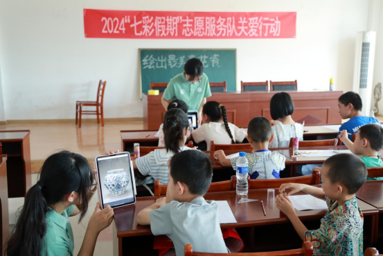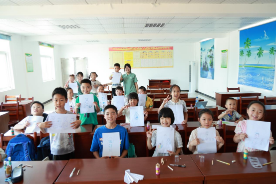 而曹武镇另一端的趣味公益课堂也在如火如荼进行着。书法课上,志愿者为孩子们讲解了我国文字的发展历程,带领孩子们学写毛笔字,领略书法魅力。科学课上,志愿者带领孩子自制VR眼镜,体验虚拟世界;绘画课上,孩子们绘画简易青花瓷图案,领略中国传统文化之美;手工课上,志愿者们与孩子们一起制作香囊,感受手工制作的魅力。在公益课程后,志愿者为孩子们进行了作业辅导,解决日常学业中的困难。