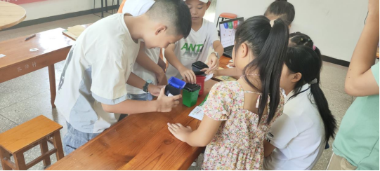 与此同时,在界牌村的活动室内,孩子们学习了垃圾分类的小常识,明白地球是我们的美丽家园,要爱护环境,将环保意识谨记于心。并且志愿者老师们还为孩子们科普了健康饮食的小知识,学习了认识食品配料表的方法,了解了饮料包装盒上常出现的几种食品添加剂,树立了健康的饮食观。