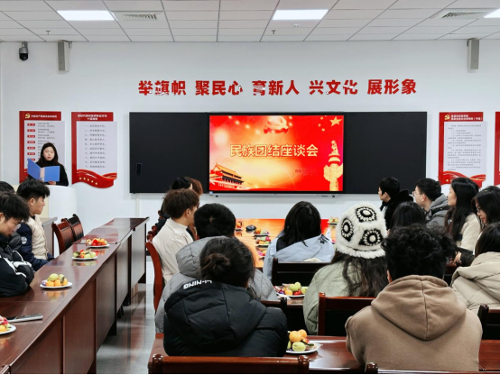 座谈会围绕“增进民族团结,共创和谐未来”主题展开。座谈会上,师生们首先共同学习了习近平总书记关于铸牢中华民族共同体意识的系列重要论述;然后土家族员工代表、彝族员工代表、藏族员工代表等分别介绍了本民族的民族特色、风俗习惯等,老师们和各民族员工代表进行了愉快的交流;最后,郝淑颖老师进行总结讲话。