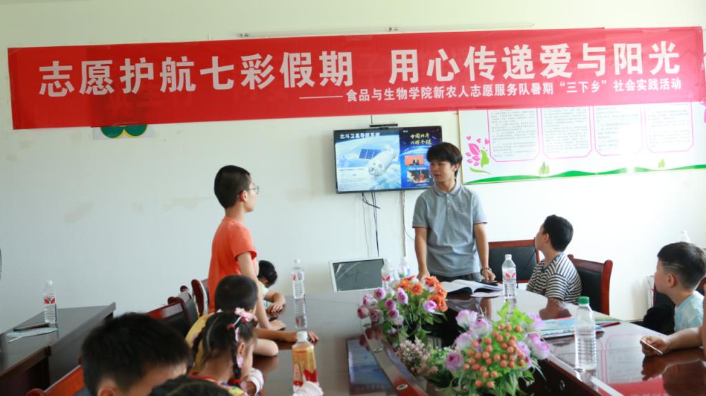 (通讯员:胡幸钰 江新宇) 2025年7月14日,bevictor1946韦德官网“新农人”志愿服务队暑期“三下乡”社会实践活动迎来了第七日。团队围绕“魔法光学”“感受中国科技的神奇”“小吸管‘搭’世界”三大主题,为孩子们铺展开一堂融知识性与趣味性于一体的课程,让欢声笑语里飘满知识的芬芳。